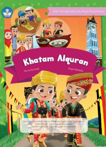 Buku cerita anak tentang khatam Alquran mengajarkan prestasi religius, Islam, belajar Alquran, dan perayaan khatam.